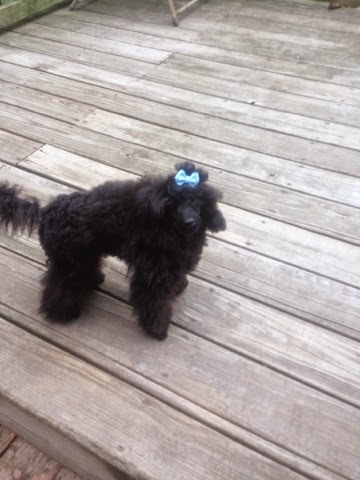I think he looks pretty darn cute. In fact I'm going to keep the top knot and tail Pom Pom when he's clipped so he can keep sporting bows. Tuvok doesn't seem to mind. So far his absolute favorite thing is being combed. Tuvok's hair bows are from The Pooch Patch on Etsy.